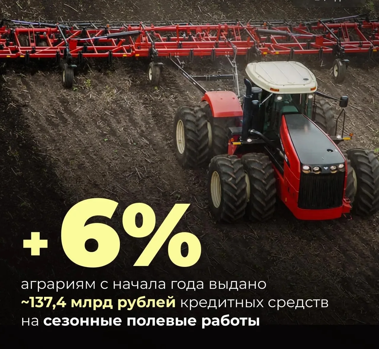 Объем кредитных средств, выданных ключевыми банками на проведение сезонных полевых работ, с начала года составил ~137,4 млрд рублей. Это на 6% больше, чем за аналогичный период прошлого года.